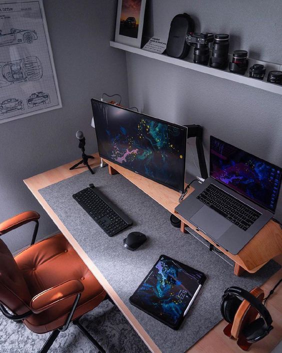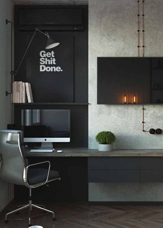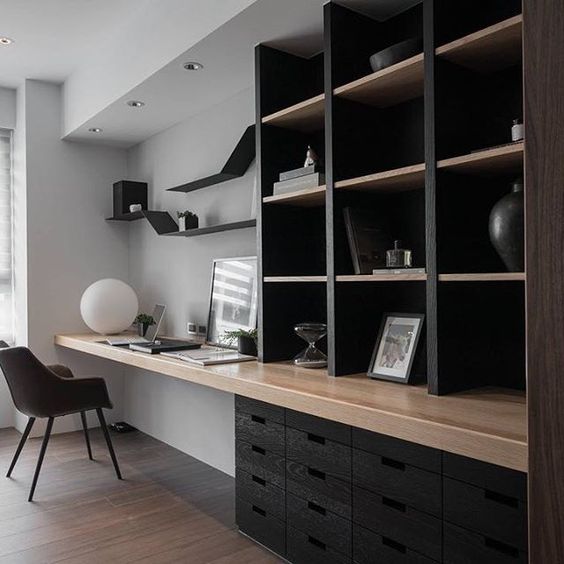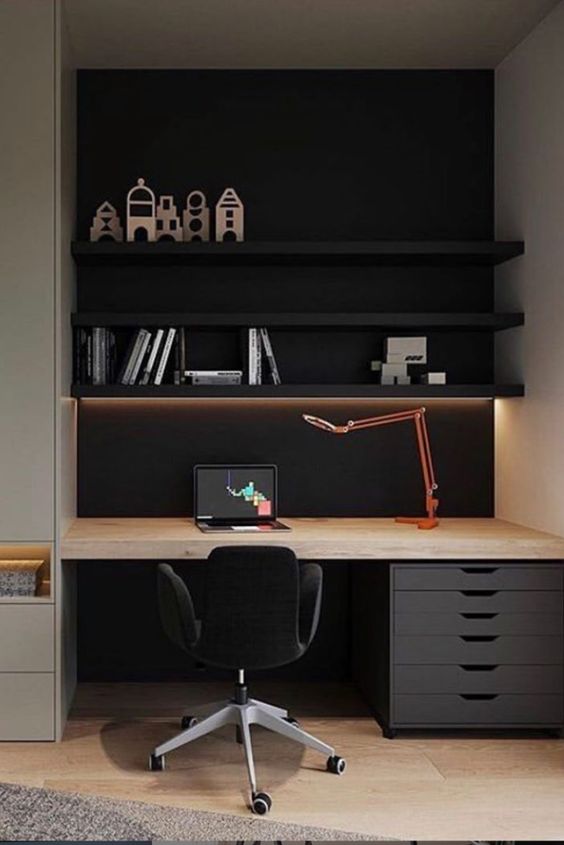 The most important is to design a desk. It has been proven in practice that as much as we crave minimalism and not overburdening space, everyone needs a good big desk with a drawer.